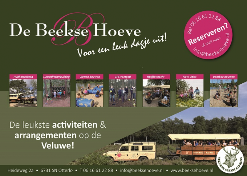 15.00-16.30 Huifkartocht of Safarittocht over de Veluwe met een tussenstop