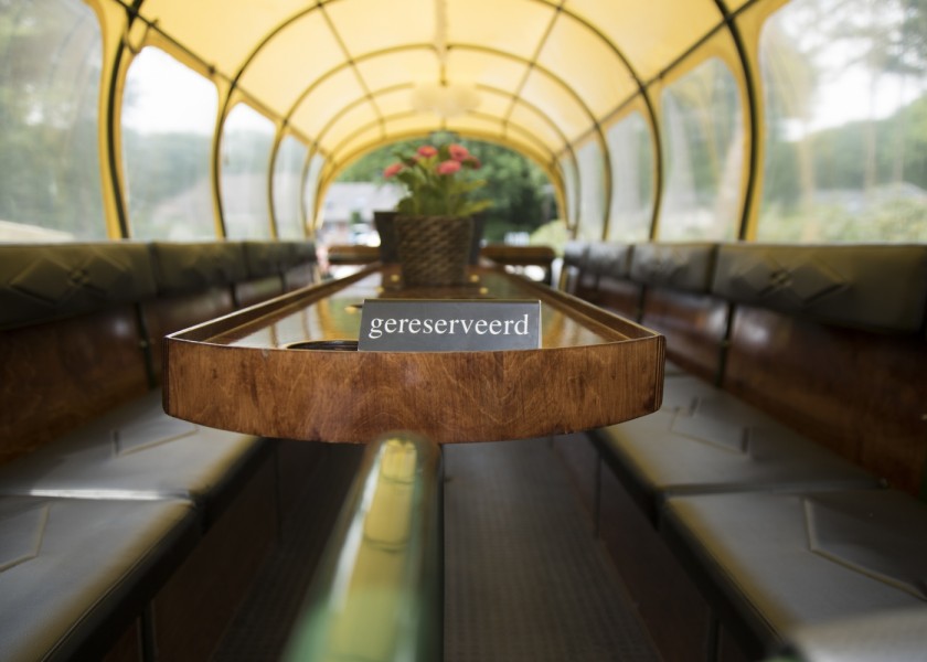 De gasten worden ontvangen met koffie/thee en appelgebak bij Restaurant Sophia's aan het strand op Droompark de Zanding te Otterlo. Een stijlvol restaurant met een uniek uitzicht op het strand gelegen midden in de bossen op de Veluwe.
