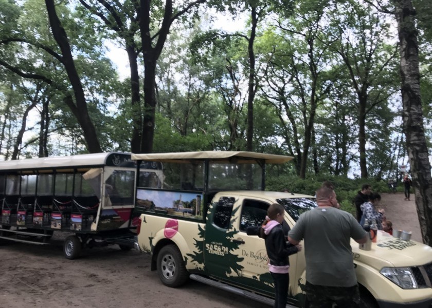 De welbekende Veluwse Safari express is geheel corona proof. De bankjes zijn door middel van een kuch schot afgescheiden, op elke bank kan 1 gezin zitten of 2 personen uit een ander huishouden.